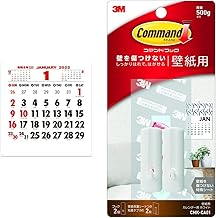 新日本カレンダー 2022年 カレンダー 壁掛け コットン文字 カレンダー NK184+ 3M コマンド フック 壁紙用 カレンダー用 ホワイト 2個 CMK-CA01 セット