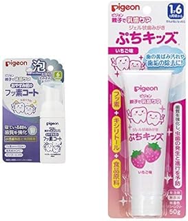 【セット買い】ピジョン(Pigeon) 親子で乳歯ケア おやすみ前のフッ素コート (泡タイプ) 【すすがない 薬用歯みがき】 子ども フッ素 歯みがき 40ml & ピジョン 親子で乳歯ケア ジェル状歯みがき ぷちキッズ いちご味 (医薬部外品) 50g