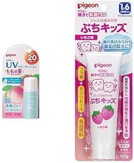 【セット買い】ピジョン(Pigeon) UVベビーロールオン ももの葉 SPF20【0ヵ月から 無添加 ベビー日焼け止め】 & ピジョン 親子で乳歯ケア ジェル状歯みがき ぷちキッズ いちご味 (医薬部外品) 50g