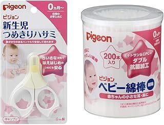 【セット買い】ピジョン 新生児つめきりハサミ & ピジョン ベビー綿棒 (細軸タイプ) 200本入