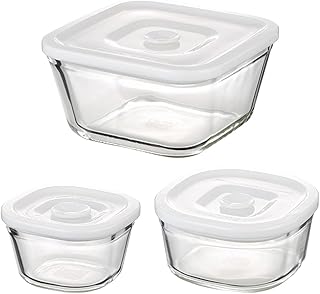 iwaki(イワキ) 耐熱ガラス 密閉容器 ホワイト 角型 3点セット 密閉パック&レンジ PSC-MP-3W2