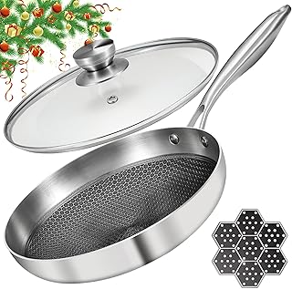 DELARLO 3層構造 ステンレススチール 傷防止 セミノンスティック ハニカム フライパン 人間工学に基づいたハンドルと六角形デザイン 多用途 (12インチ) (12インチ) (12インチ)