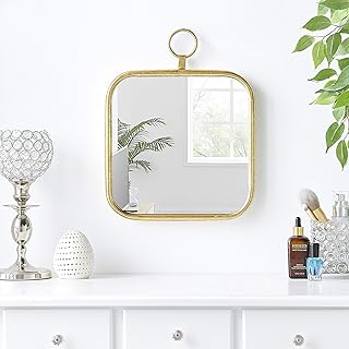 壁掛けミラー 正方形装飾ミラー 12インチ x 12インチ メタルフレーム壁ミラー リビングルーム ベッドルーム バスルーム用 (アンティークゴールド)