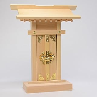 ハセガワ仏壇 [神棚 大神宮 小型]壁掛け (高33・札丈28) 木曽桧 国産 お札 収納 神具7点セット付