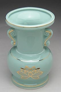 ハセガワ仏壇 青磁上金蓮大玉仏花 (花立) 4.5寸 【陶器製】 (青)