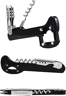 Houseables Boomerang Corkscrew, No Blade, Foil Cutter, Waiter's Cork Screw & Bottle Opener, 3 in 1, Wine Opener, Beer Opener, Multi Use, Black, Compact
