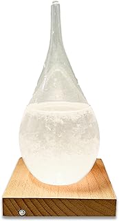 YYT 天気で表情が変わる ミニ 卓上ストームグラス 木製の台座付き しずく型