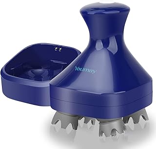 Youmay頭皮ブラシ 電動 ヘッドブラシ 頭皮エステ IPX7防水 お風呂 女性 メンズ 乾湿両用 USB充電式 コードレス 10分タイマー 自宅 オフィス 出張 旅行 日本語取扱説明書付き 頭皮用ブラシ ダークブルー版