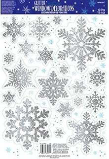 ウィンター ワンダーランド クリスマス パーティー 雪の結晶 グリッター ビニール ウィンドウ デコレーション シルバー ビニール 各種サイズ 19ピース シルバー