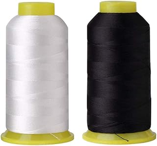 [1500ヤードスプール2パック | サイズ#69 T70 210D/3 | ブラック+ホワイト] 高耐久接着ポリエステル縫糸 張り布 レザー ビニール キャンバス その他の重い生地用 (合計3000ヤード)