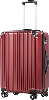 [クールライフ] COOLIFE スーツケース キャリーバッグダブルキャスター 二年 機内持込 ファスナー式 人気色 超軽量 TSAローク (ワイン, M サイズ(24in))