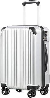 [クールライフ] COOLIFE スーツケース キャリーバッグダブルキャスター 二年 機内持込 ファスナー式 人気色 超軽量 TSAローク (カーボンホワイト, L サイズ(28in))