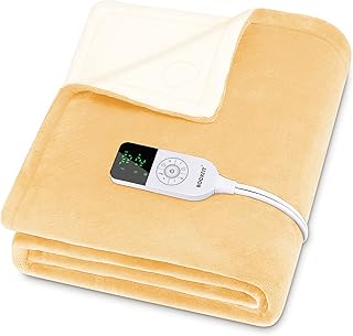 ROCKFIT 電気毛布 敷き毛布 電気 掛け敷き毛布 【1単位調節可】 電気ひざ掛け毛布 電気ブランケット 【25~70℃温度調節】 【1~12時間タイマー】 洗える フランネル素材 抗菌 防臭 ダニ退治 肩掛け 電気毛布 省エネ ふわふわ 防寒対策 PSE認証済 日本語説明書 140X80cm AC100-120V イエロー&ホワイト
