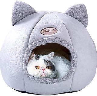 猫ベッド 猫ハウス ペット用寝袋 キャットハウス ドーム型 暖かい ふわふわ 休憩所 冬用 ぐっすり眠れる 水洗え 小型犬 キャット ペット小屋 室内用 (グレー)