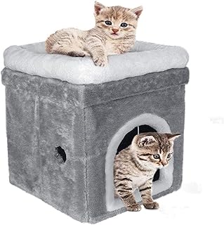 ENMNM 猫ハウス 冬 猫用ベッド キャットハウス クッション 多頭用 ペット用ソファー 2階 猫ベッド ボックスハウス 寝床 ペットベッド ソフトケージ 冬用 暖かい ぐっすり眠れる 冬寒さ対策 ふわふわ (グレー)