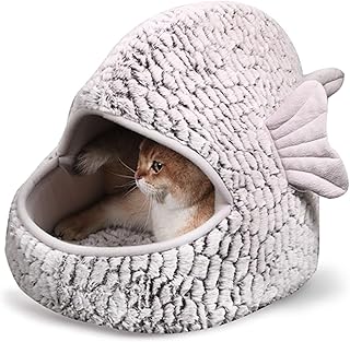 猫ベッド グレー 猫ハウス ペット用寝袋 キャットハウス ドーム型 魚 暖かい ふわふわ L 休憩所 冬用 ぐっすり眠れる 水洗え 小型犬 キャット ペット小屋 室内用 魚ハウス 寒さ対策 保温防寒 洗える