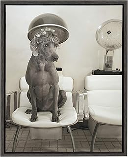 DesignOvation Sylvie Dog Salon Framed Canvas Wall Art by Robin A. Bell, 18x24 Dark Gray, Animal Home Decor for Living Room, Bedroom, Bathroom, Or Nursery 141[並行輸入]