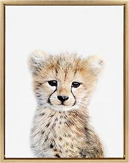 Kate and Laurel Sylvie Cheetah Framed Canvas Wall Art by Amy Peterson, 18x24 Gold, Baby Animal Home Decor 141[並行輸入]