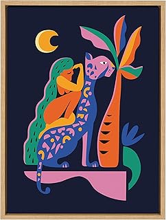 Kate and Laurel Sylvie Girl On Cheetah Framed Canvas Wall Art by Rachel Lee, 18x24 Natural, Vibrant Colorful Home Decor 141[並行輸入]