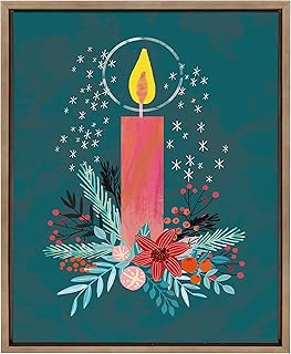 Kate and Laurel Sylvie Holiday Candle Framed Canvas Wall Art by Mia Charro, 18x24 Gold, Festive Home Decor for The Holidays 141[並行輸入]