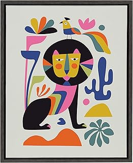 DesignOvation Sylvie Frida Cathlo Framed Canvas Wall Art by Mia Charro, 18x24 Natural, Colorful Baby Animal Home Decor 141[並行輸入]