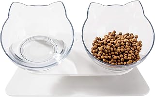 Dopet 猫&犬食器 猫ボウル ペット食器 スタンド 猫皿 食器スタンド フードボウル ペット皿 猫用食器 ボウル ウォーターボトル 餌入れ 猫ちゃん用 ごはん皿 小中型犬用・猫用 食事台 ペット 給餌器 給水器 食べやすい 食器台付き 角度自由に調整 手入れ簡単 頭を下げらず 滑り止め ペット用品(透明)