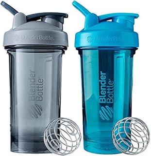 BlenderBottle プロシリーズ シェーカーボトル ブレンダーボール ラウンドベース 注ぎ口ガード付き 24オンス 2個パック (グレー - ブルー)