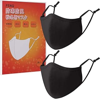 [Amazon限定ブランド] マスク 秋冬用マスク あったかい 防寒 防風 保温機能 銀イオン入り 息がしやすい 蒸れない 洗える 耳紐アジャスター付き 2枚入り FENQ ブラック