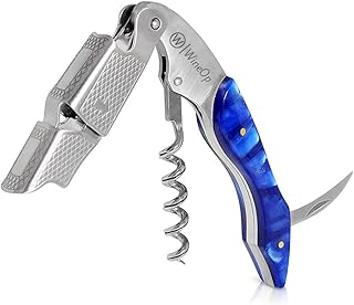 WineOp プロフェッショナルワインキー - ラグジュアリーダブルヒンジウェイターコルクスクリューワイン栓抜き ソムリエ バーテンダー サーバー オールインワン ステンレススチール ブルーサファイア樹脂ハンドル