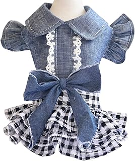 (ボラ-キキ) Bole-kk 犬の服 ペット服 ドッグウェア スカートワンピース デニム 小型犬 中型犬 洋服 tシャツ ドレス チェック かわいい 春夏秋 (M)