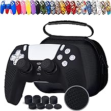 JYXETOV PS5ハンドルコントローラーシリコン保護カバーと+収納バッグ(27オプション)。無料の8ボタンキャップ。オリジナル充電器、滑り止めデザイン、両面印刷パターンに適しています)