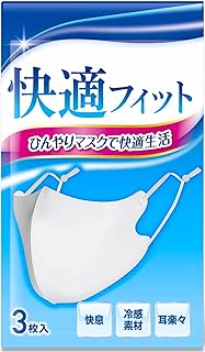 3D FIT COOL 冷感 マスク ひんやり サラサラ素材 3枚組 男女兼用 調整紐付き 立体構造 丸洗い 耳が痛くなりにくい レギュラー