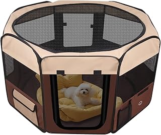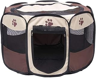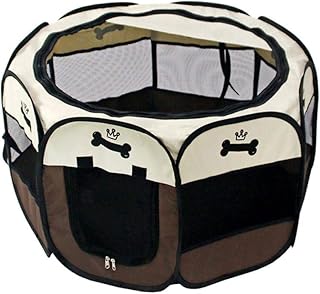 Enkarl ペットサークル 折りたたみ 八角形 メッシュサークル ペットテント 通気性抜群 アウトドア 防水 ペットハウス 子犬プレイペン 猫の分娩室 コンパクト 持ち運び 軽量 ペット用ケージ 屋内屋外 収納バッグ付き ペットボウル付き (Sサイズ, ブラウン)