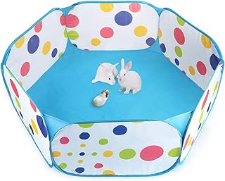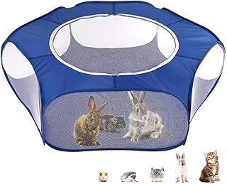MIGOGO ペットサークル 小動物フェンス プレイサークル ウサギ ハリネズミのテント 六角形 網目あるのケージ 折りたたみ 室外 室内 透明 自由 持ち運び便利 (ブルー)