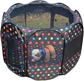 Yihiro ペットサークル 犬 猫 中小型 折り畳み メッシュ プレイサークル ファスナー アウトドア 急な来客対応 収納簡単 ペットサークル ドット柄